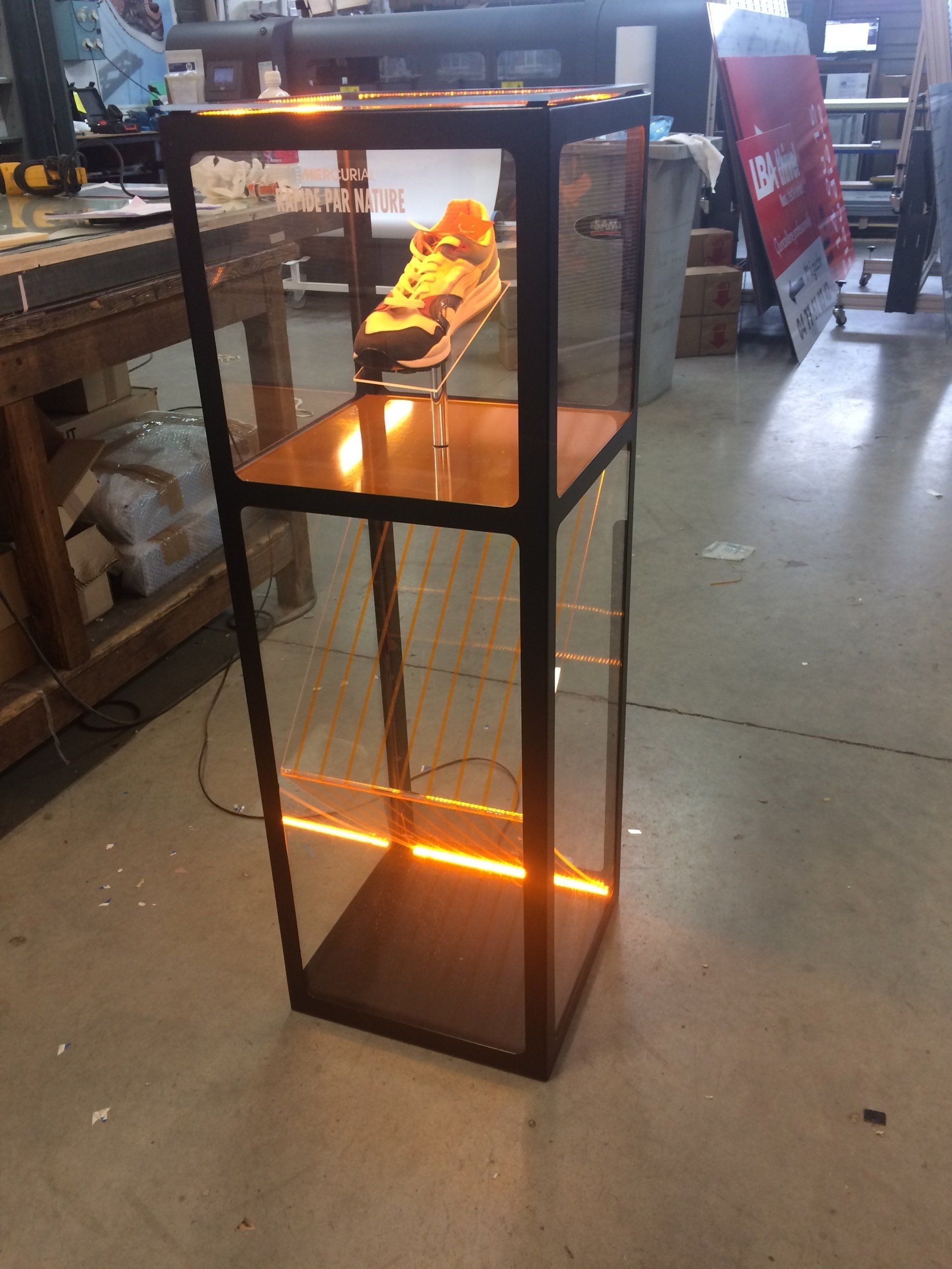 Théâtralisation, PLV en volume, présentoirs lumineux